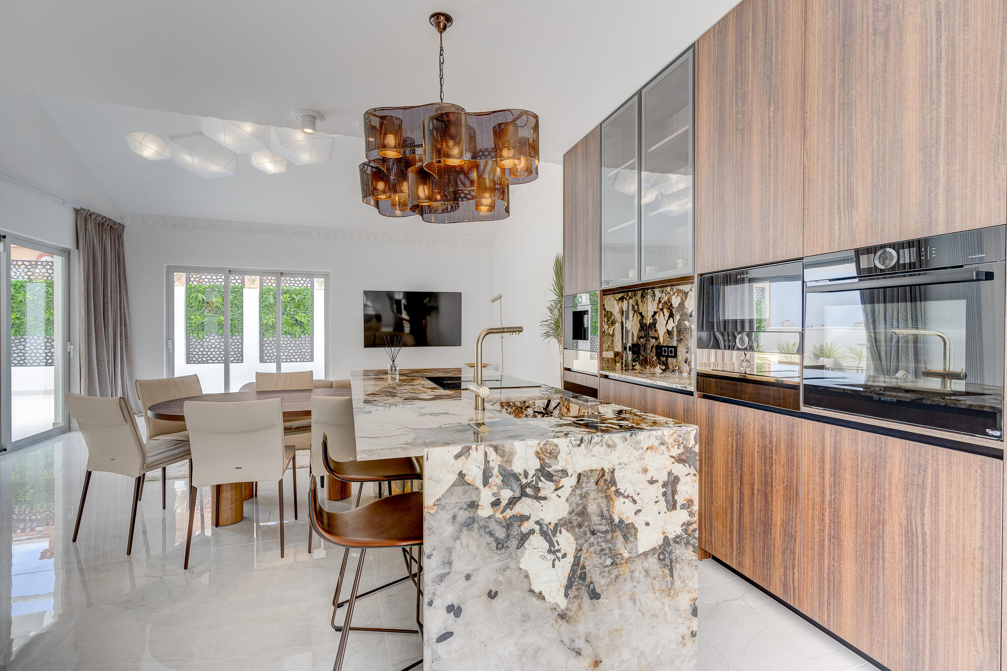 Bright Open Concept Kitchen And A Lounge With Floor To Ceiling Sliding Doors Which Lead Out To The Main Terrace.